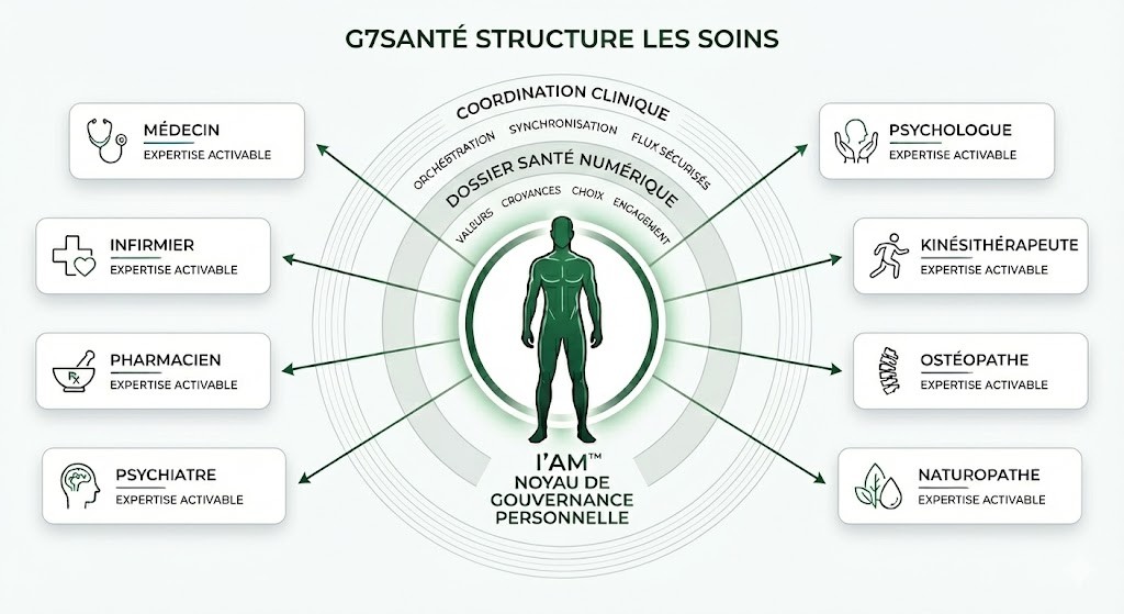 « Naviguer seul entre le public et le privé est épuisant et risqué… G7 SANTÉ a été conçu pour abolir cette distance. Nous ne nous contentons pas d'additionner des services; nous créons une architecture de santé unifiée. En connectant l'expertise infirmière, la rigueur technologique et les soins intégratifs, nous transformons un parcours souvent chaotique en une prise en charge fluide, logique et sécuritaire. »